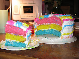 | This birthday cake was a last minute thing. And so I kind of ran off the edge writing Thorsten's name. Everybody still enjoyed the cake! |