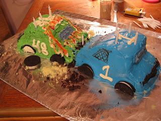 | Because this was his first year racing he had a "Rookie" strip on the back of his car. So with frosting put that on. |